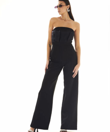Tuta intera nera con velo sul corpetto